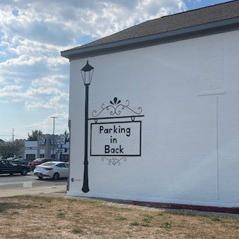 This ‘Parking in Back’ sign for Gomez Multi Services definitely stretched my skills. I got to hop on a lift for the first time and paint big and bold up high. Challenging, but I had an absolute blast bringing this to life!