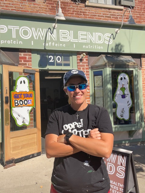 Spooky season came to Uptown Blends with playful BOO-ful ghosts on the windows! On the door, ‘Get your BOOst’ adds a fun Halloween twist while highlighting their Herbalife products. It’s a festive, eye-catching way to welcome customers and celebrate the season!
