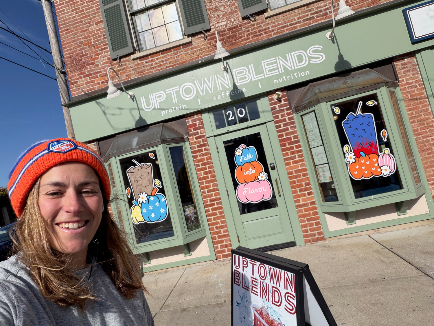 Uptown Blends is bringing all the cozy vibes this season with playful pumpkins in bright colors and fun patterns, surrounded by cheerful fall flowers! The festive window design pairs perfectly with their delicious teas and shakes — a sweet, seasonal way to brighten your day and welcome autumn in style. 🎃💛🍂